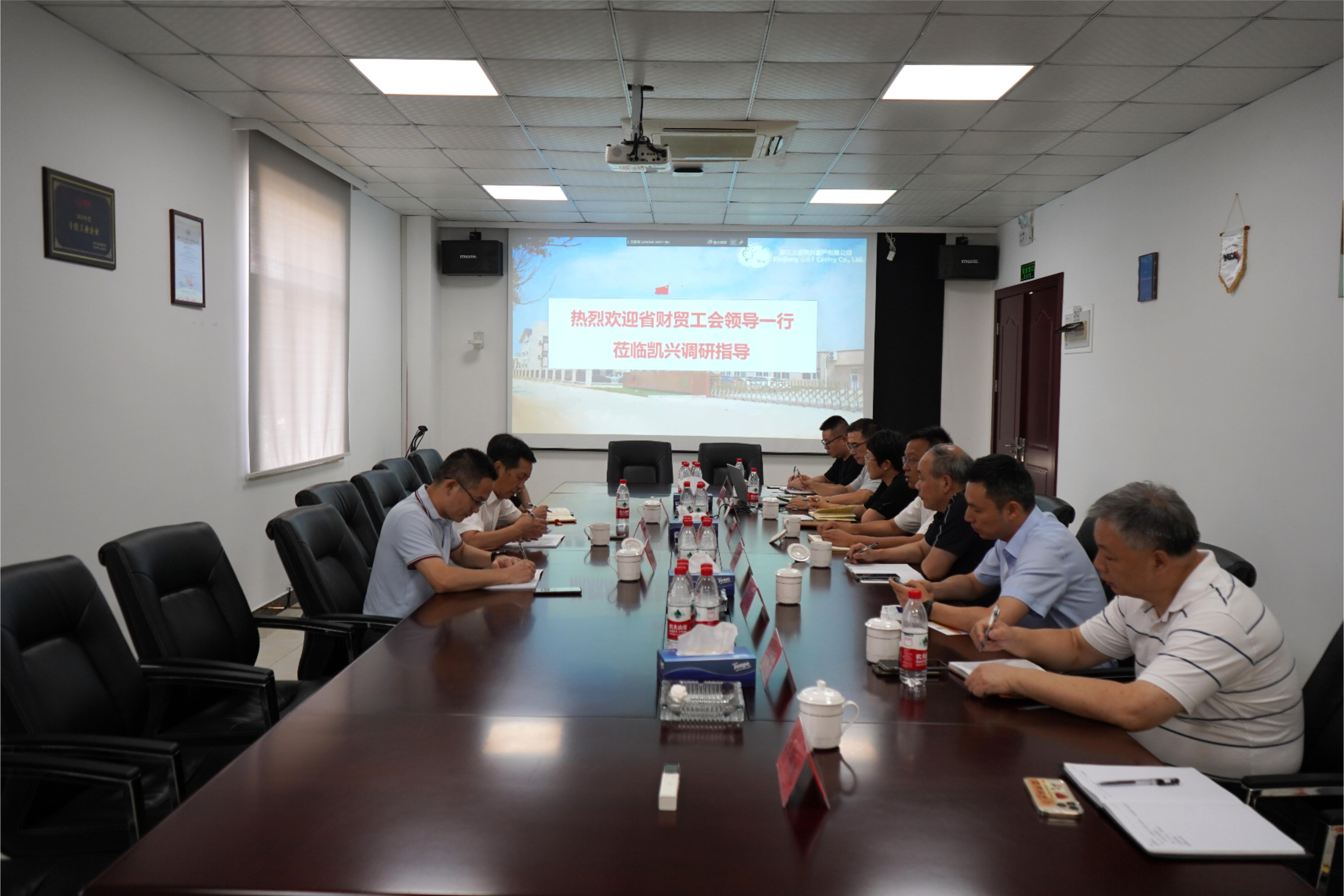 8月5日,省财贸工会主席杨宝明、副主席徐畅一行到浙江土畜凯兴畜产有限公司开展调研与高温慰问,集团工会及浙江土畜相关负责人参加调研。