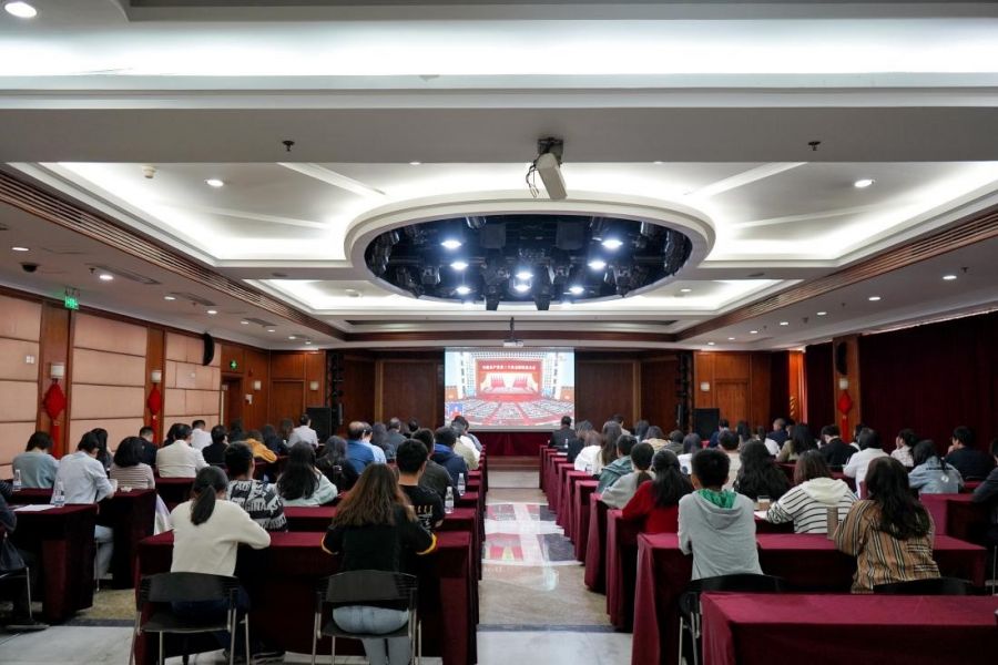 浙江土畜党委在公司19楼组织观看党的二十大开幕会,聆听学习习近平总书记的重要报告。公司全体党员、民主党派以及海外缅甸制衣厂员工满怀信心与期待,共同见证这一伟大历史时刻。